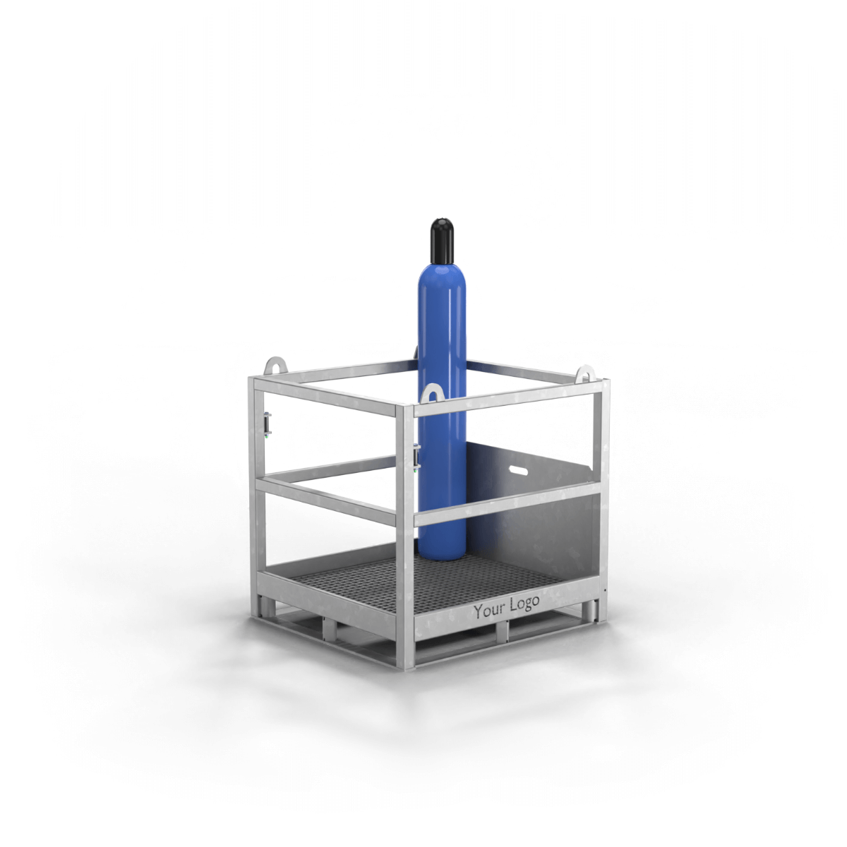 Le panier est fabriqué en acier S235JR et galvanisé à chaud conformément à la norme EN-ISO 1461, assurant une protection durable contre la corrosion, même dans des environnements industriels exigeants.