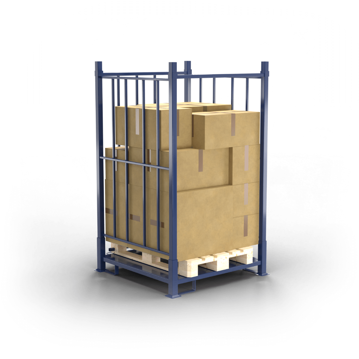 Palette en acier empilable, capacité 1000 kg, conçue pour l’organisation optimale d’entrepôts.
